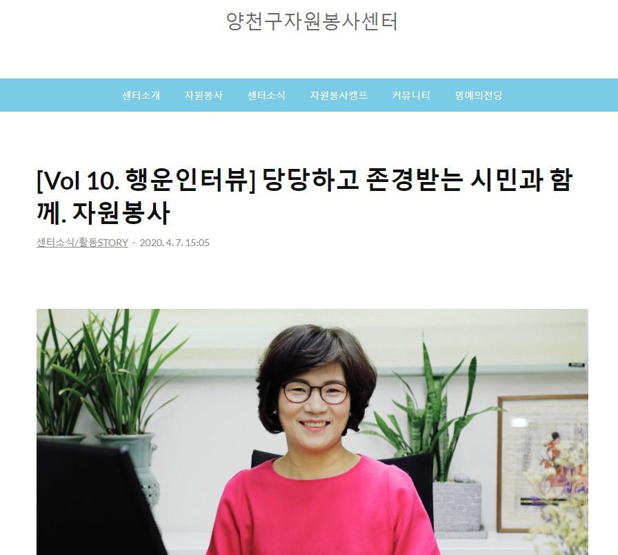 양천구자원봉사센터 행운인터뷰에 실린 박노숙 관장