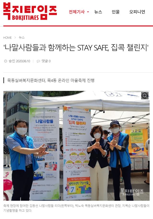 [언론보도] 2020.06.10._복지타임즈 나말사람들과 함께하는 STAY SAFE 집콕챌린지