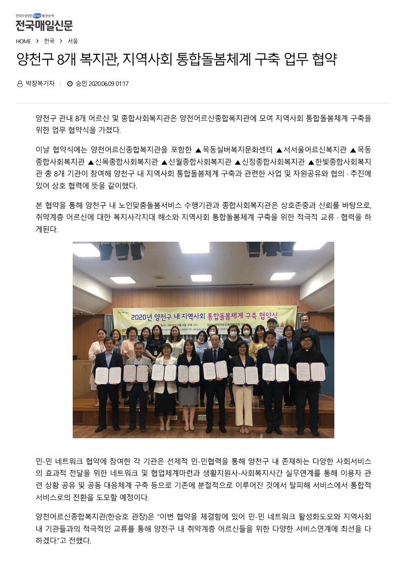 [전국매일신문] 지역사회 통합돌봄체계 구축 업무 협약