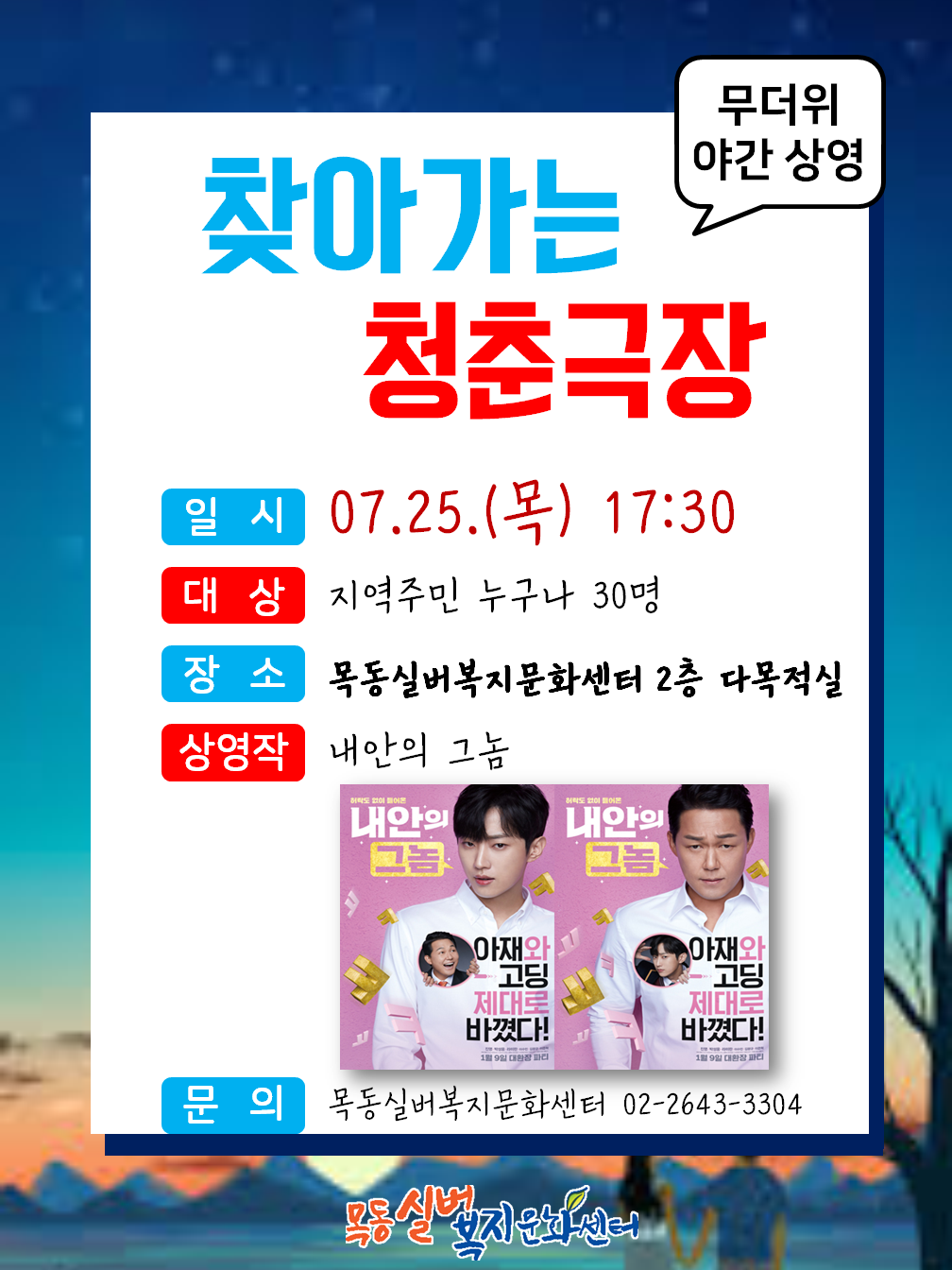 [목동실버복지문화센터] 7월 찾아가는 청춘극장 무더위 쉼터 야간 특별 상영 '내안의 그놈'