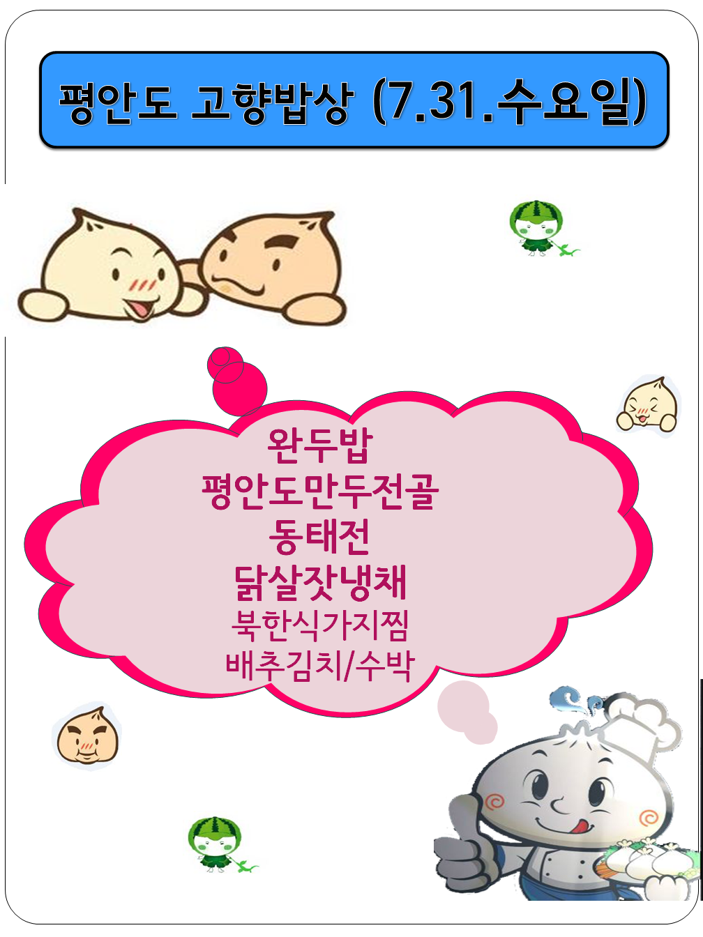 경로식당 7월 평안도 고향밥상
