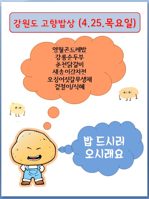 경로식당 4월 강원도 고향밥상