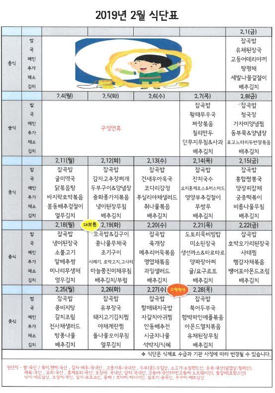 2월 식단표