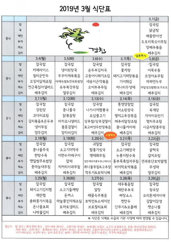 3월 식단표