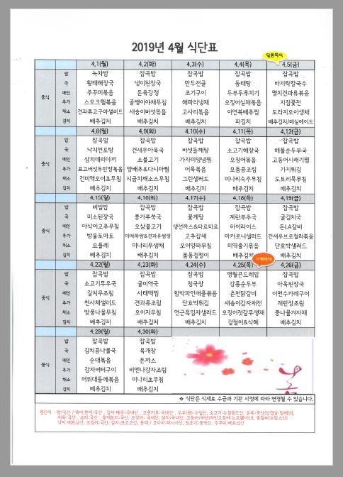 4월 식단표