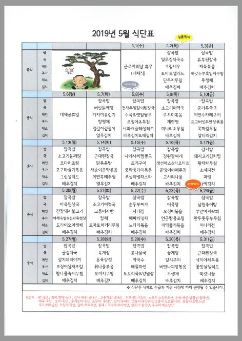 5월 식단표