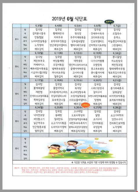 6월 식단표