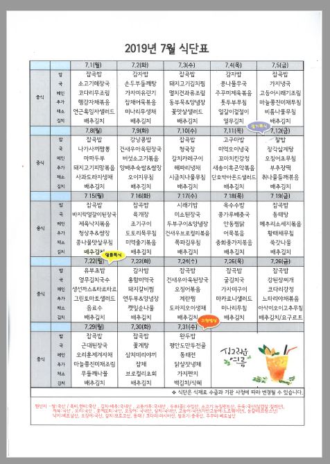 7월 식단표