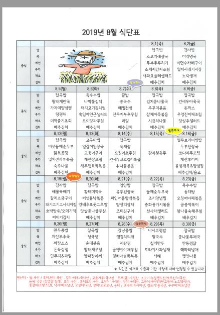 8월 식단표