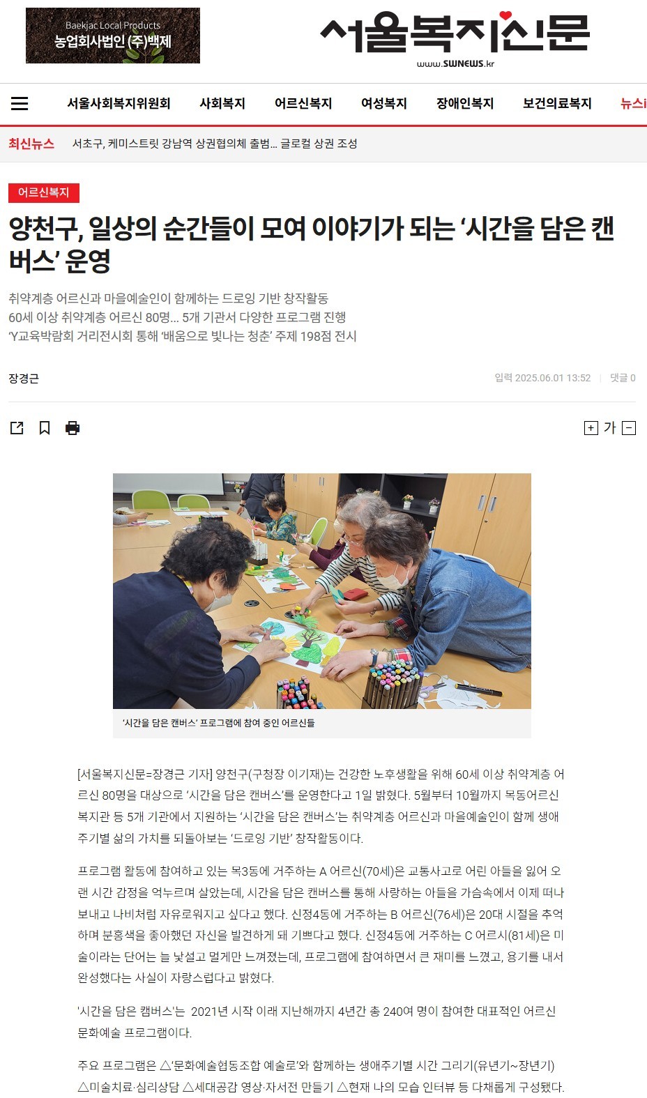 양천구, 일상의 순간들이 모여 이야기가 되는 ‘시간을 담은 캔버스’ 운영