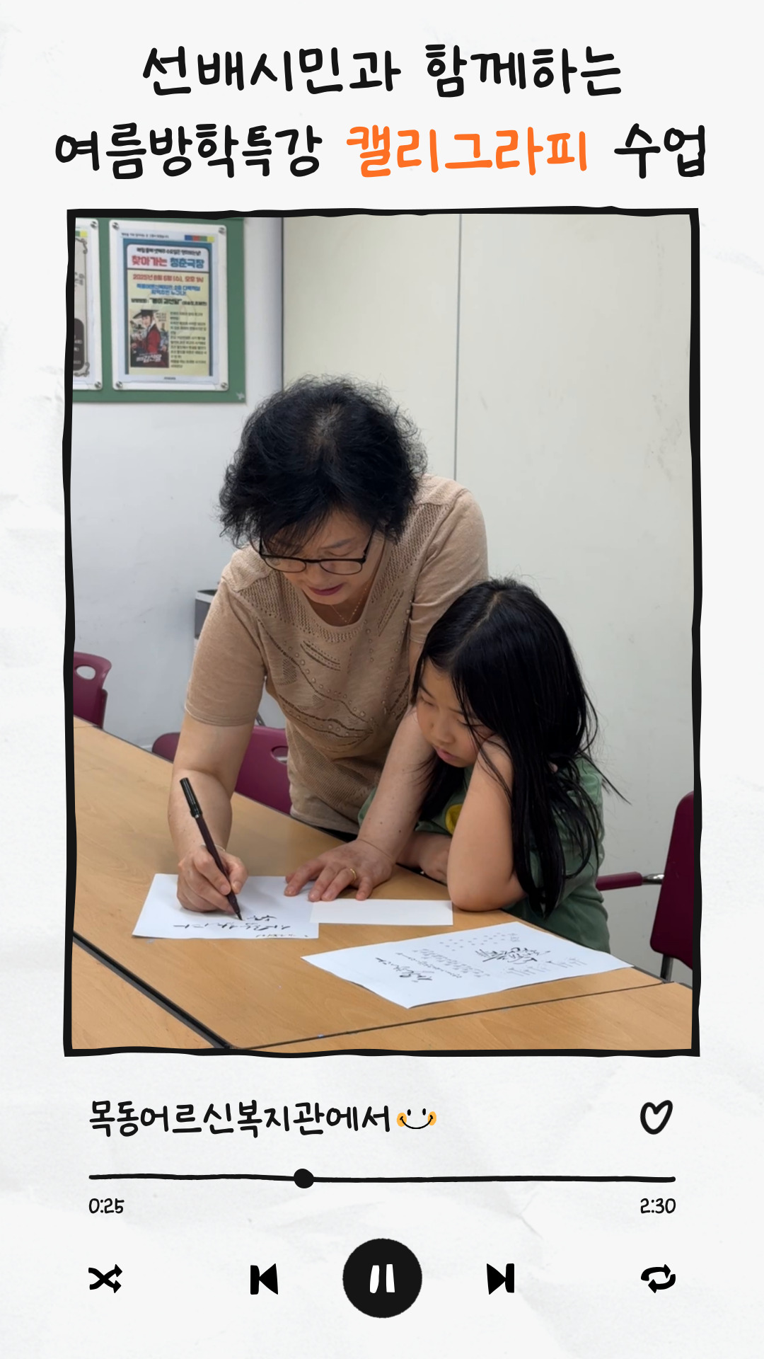 선배시민과 함께하는 여름방학특강 - 마을돌봄교실 캘리그라피 수업