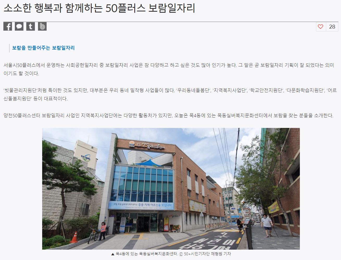 서울시50+양천50플러스센터 : 소소한 행복과 함께하는 50플러스 보람일자리
