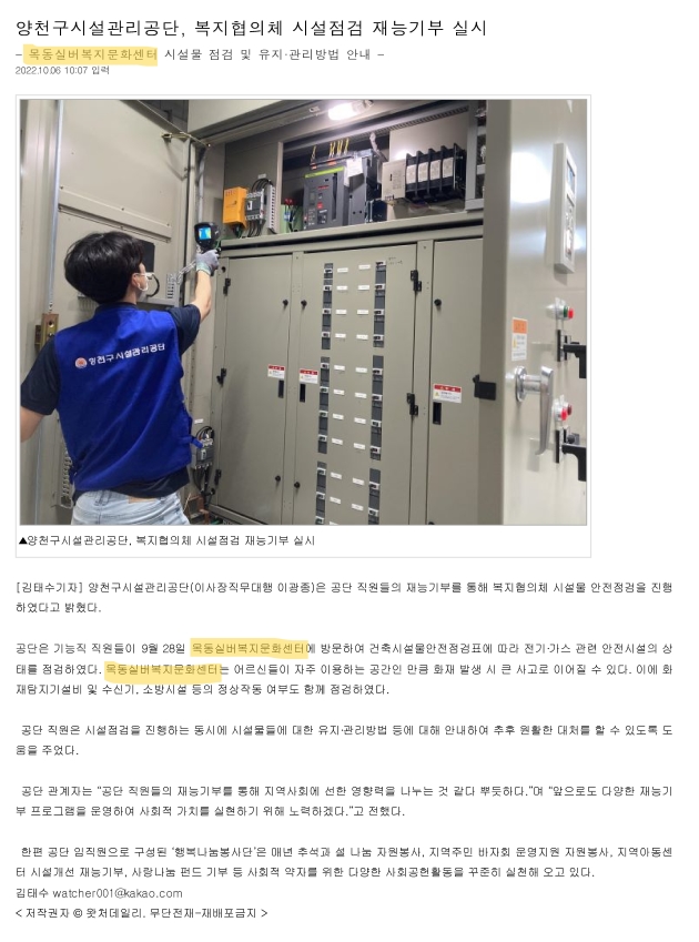 양천구시설관리공단, 복지협의체 시설점검 재능기부 실시