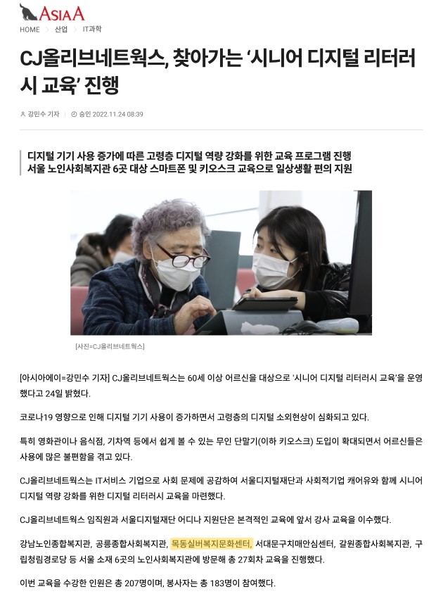 CJ올리브네트웍스, 찾아가는 '시니어 디지털 리터러시 교육' 진행