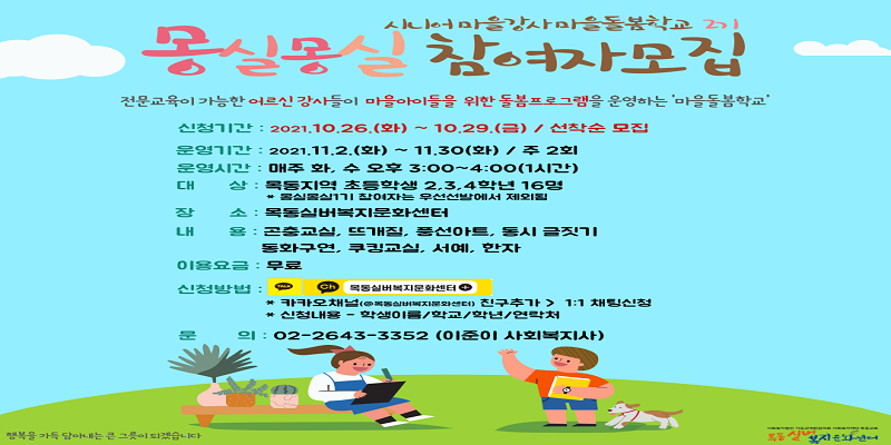 시니어 마을강사 마을돌봄학교 몽실몽실 2기 참여자 모집